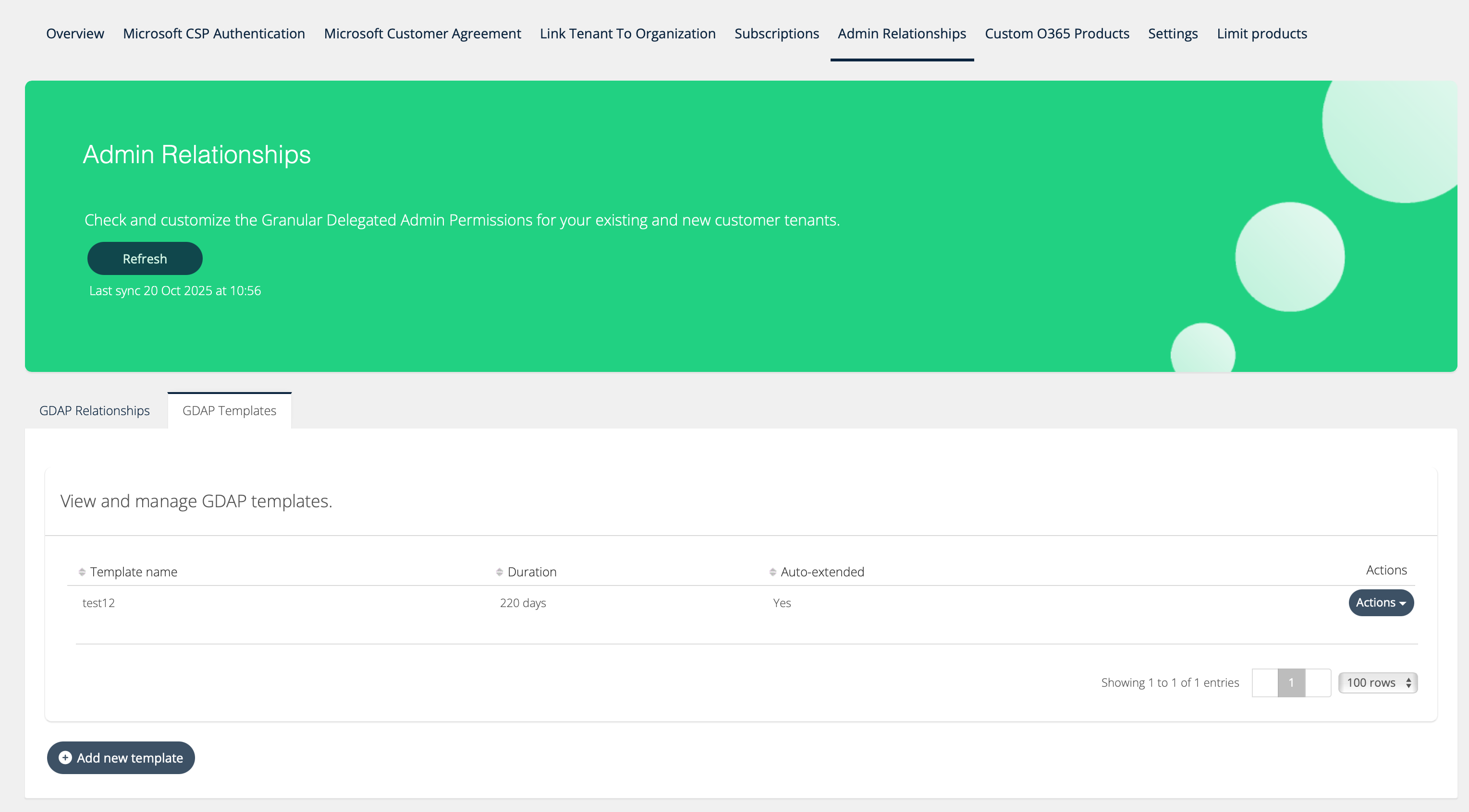 To manage GDAP templates, go the Microsoft 365 CSP service and select Admin Relationships as a broker user. You will find two tabs. Select GDAP Templates to access the tab.