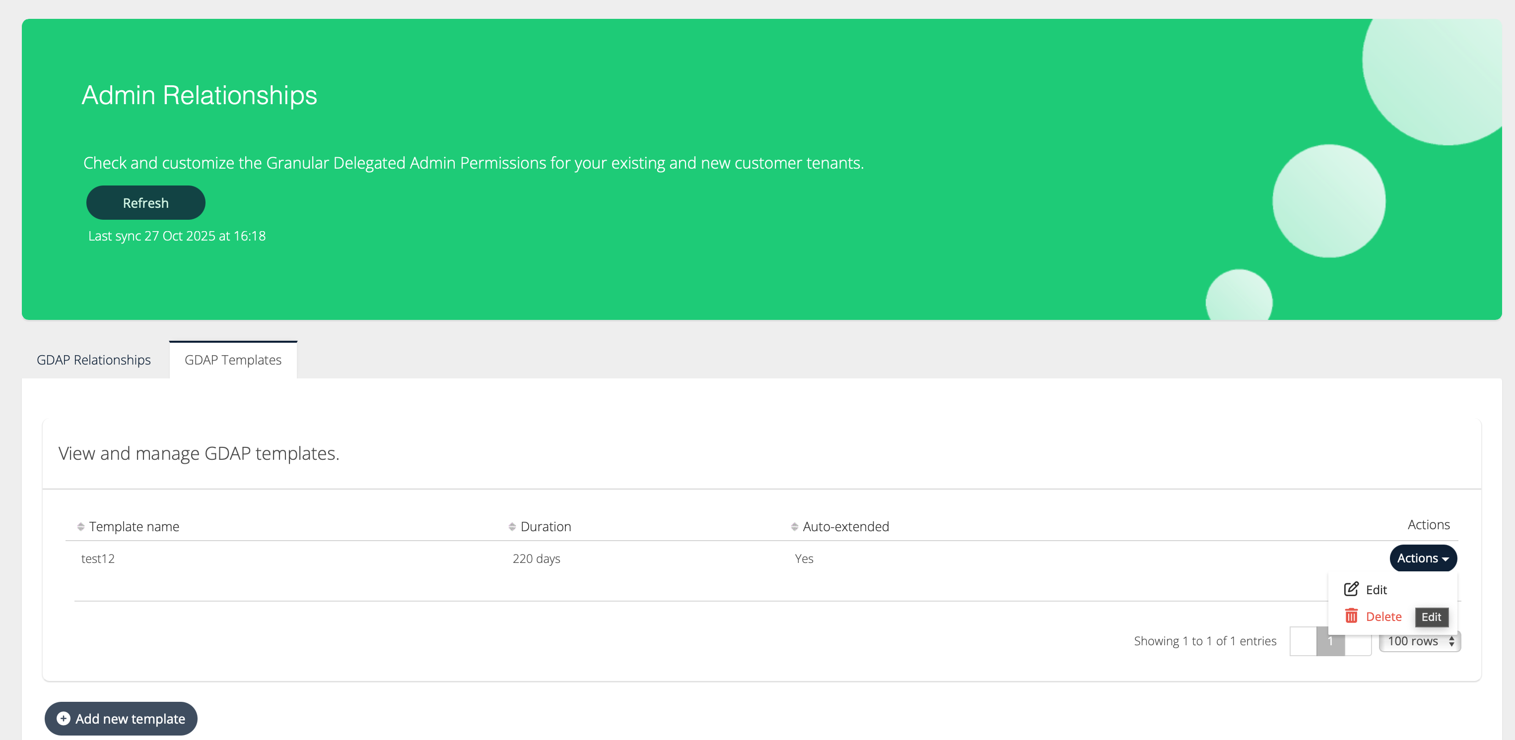Once you have created a template you will be able to select it upon creating new GDAP Relationship requests.